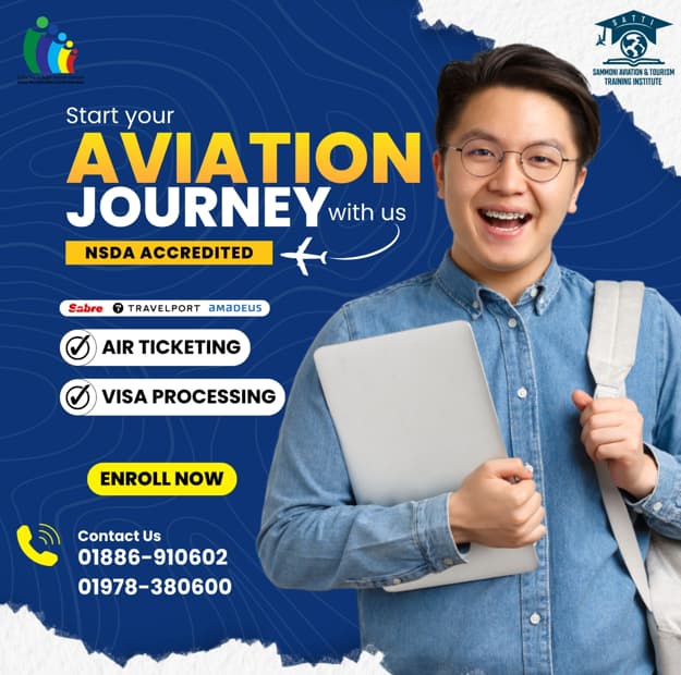 Sammoni Aviation and Tourism Training Institute is accredited by the National Skills Development Authority (NSDA), ensuring that its course structure aligns with national skill development standards. Through its focused training approach, the institute contributes to building entry-level workforce capacity for Bangladesh’s aviation and travel services industry.